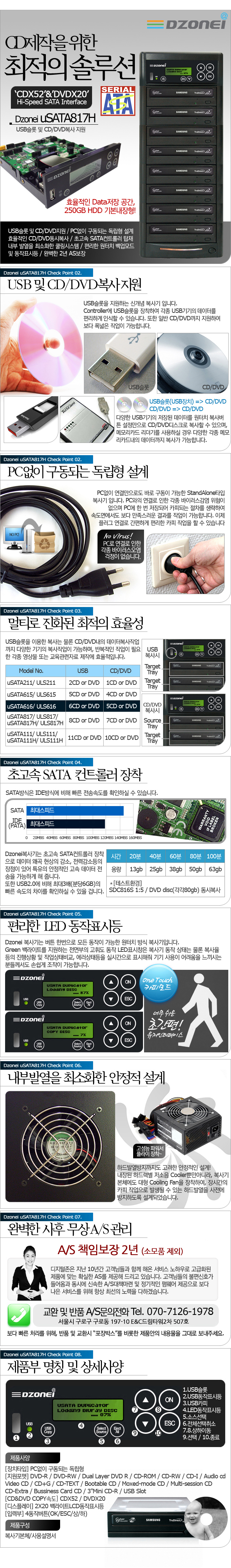 이미지 확대보기Dzonei USATA817H (1:7, DVD/CD/USB 복사,HDD장착)