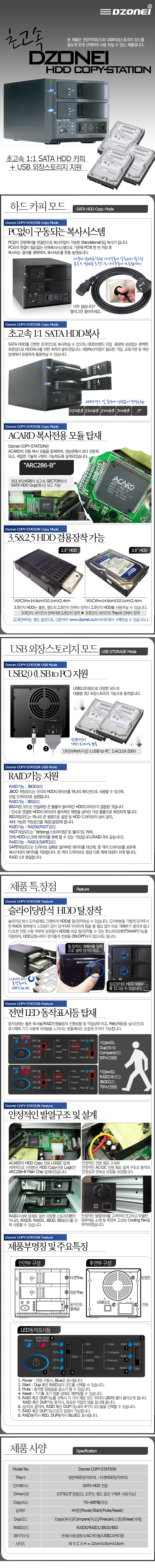 DZONEI COPY-STATION 1:1하드복사기 / USB2.0지원 / SATA방식 전용 / 2.5&3.5" 겸용 이미지 확대 보기