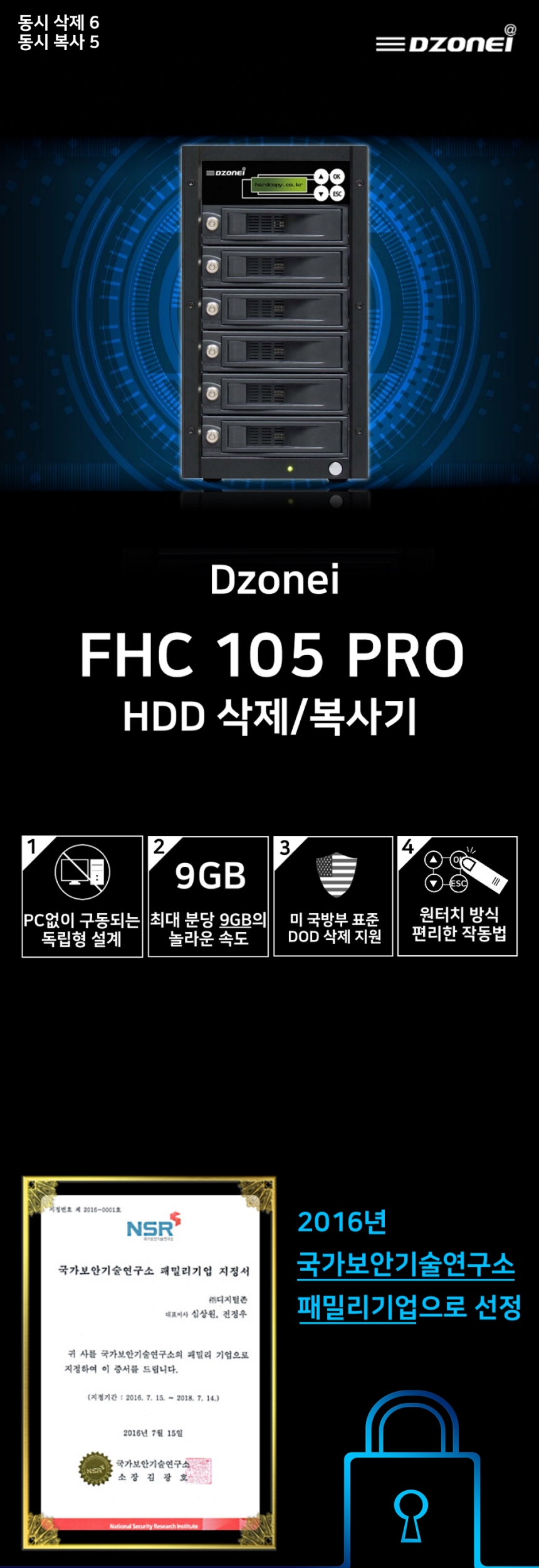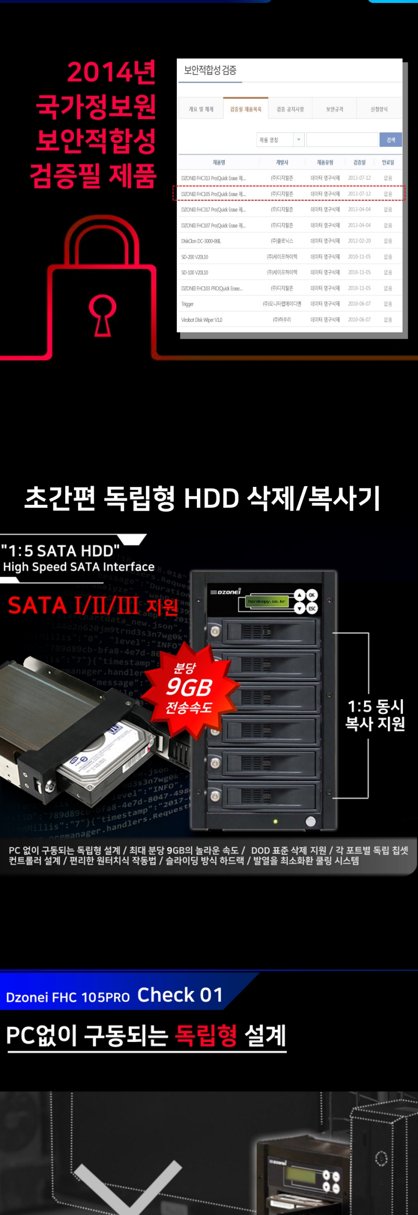 • Dzonei FHC105 PRO  (국정원 보안 적합성 검증 필, 1::5 복사, 최대 9G/분, 완전삭제/복사기, HDD WIPE, WIPING, DOD ERASE)
