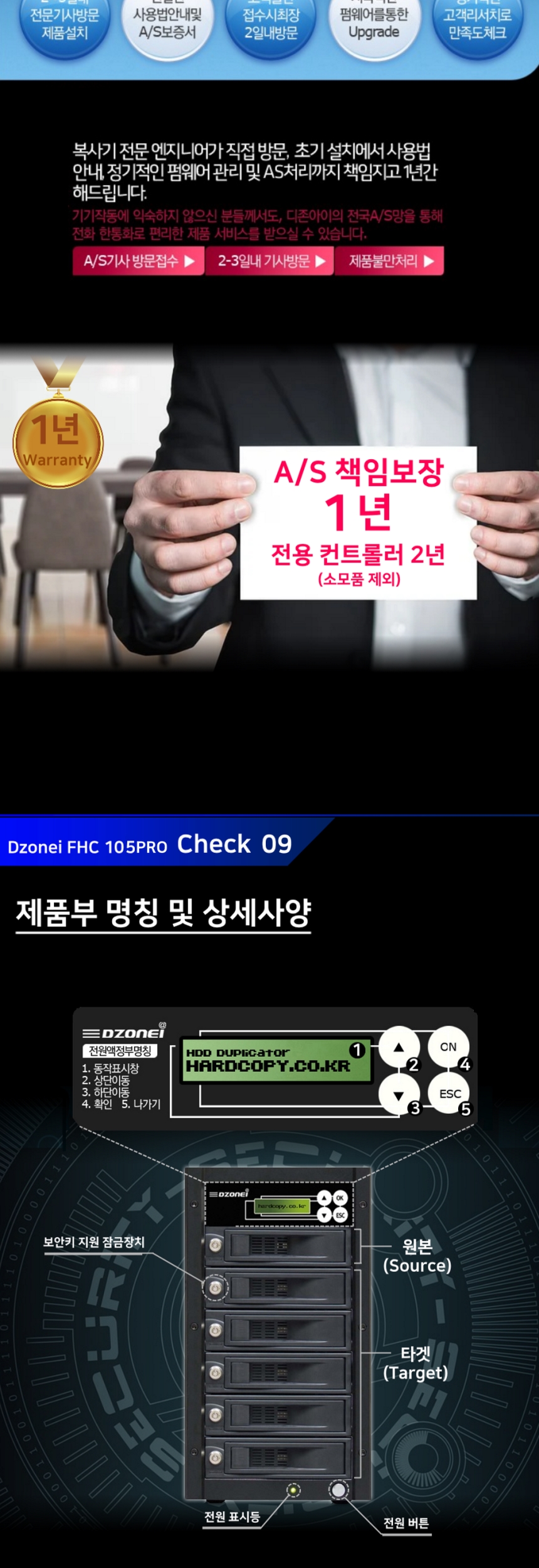 이미지 확대보기Dzonei FHC105 PRO (국정원 보안 적합성 검증 필, 1::5 복사, 최대 9G/분, 완전삭제/복사기, HDD WIPE, WIPING, DOD ERASE)