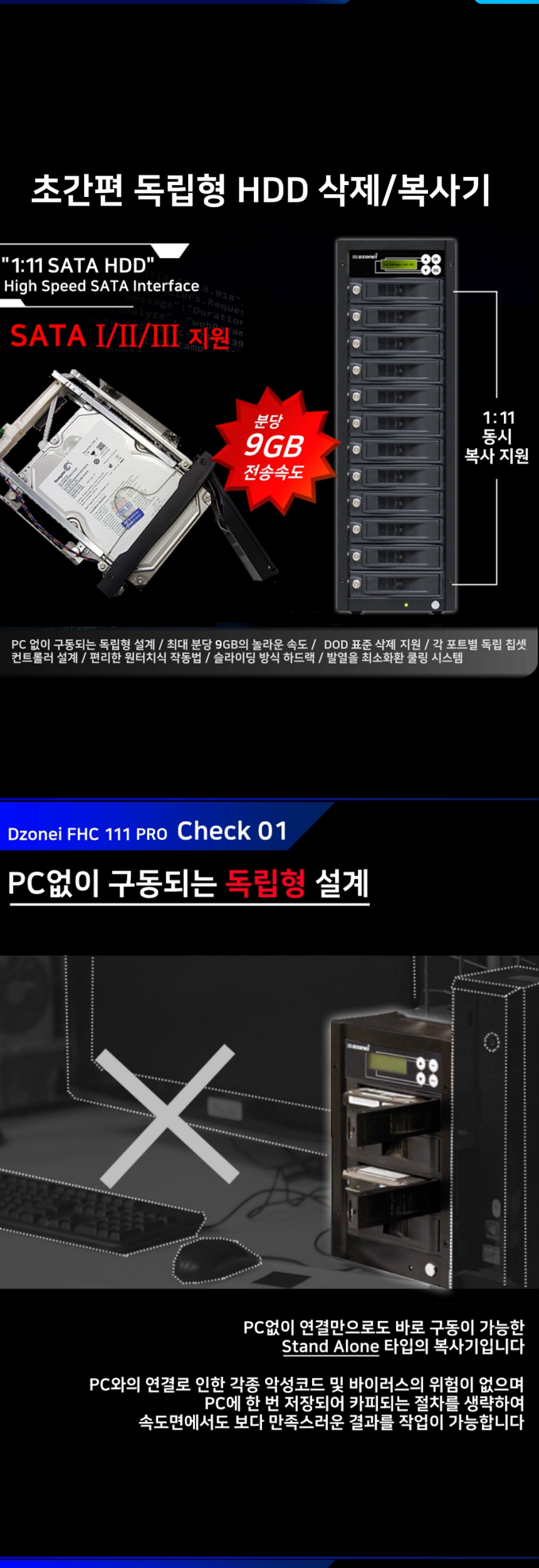 Dzonei FHC111 PRO (1:11복사 분당최고 9G, 완전삭제/복사기, HDD WIPE, WIPING, DOD ERASE)