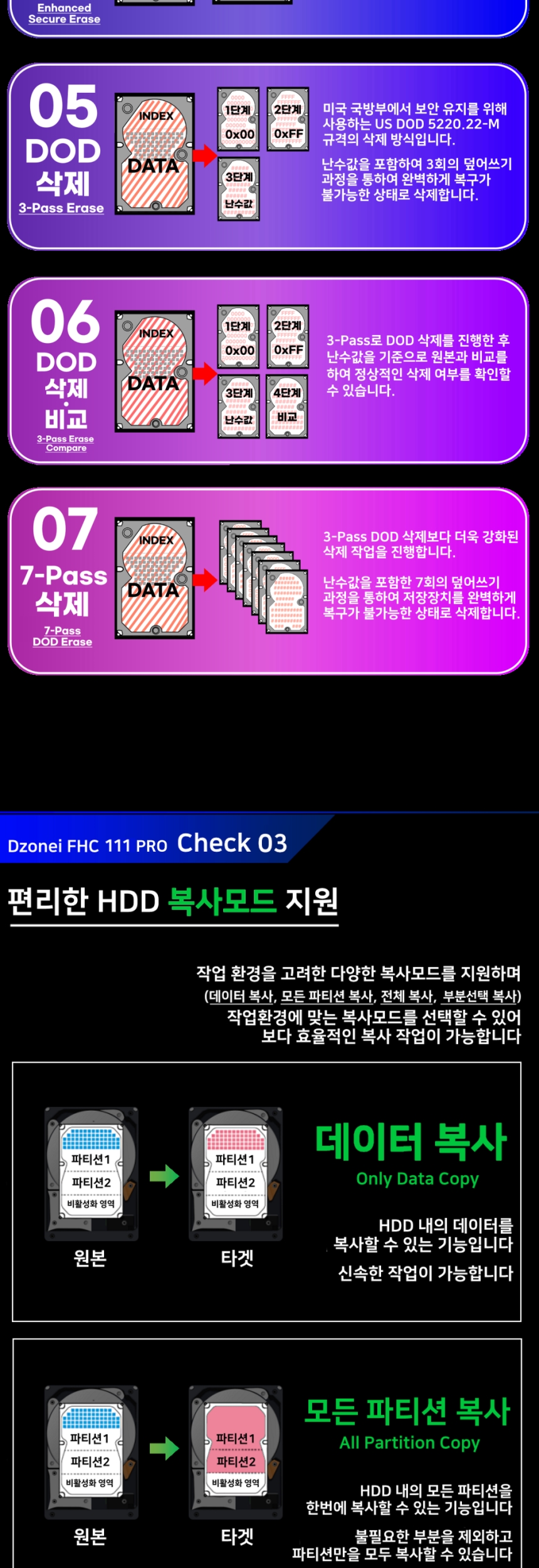 • Dzonei FHC111 PRO (1:11복사 분당최고 9G, 완전삭제/복사기, HDD WIPE,  WIPING, DOD ERASE)