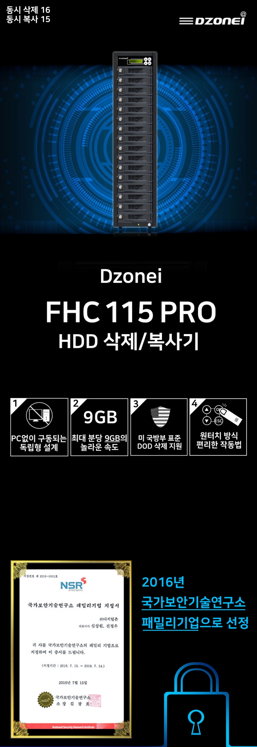 • Dzonei FHC115 PRO (국정원 보안 적합성 검증 필, 1:15 복사 9G/분, 완전삭제/복사기, HDD WIPE,, DOD ERASE)