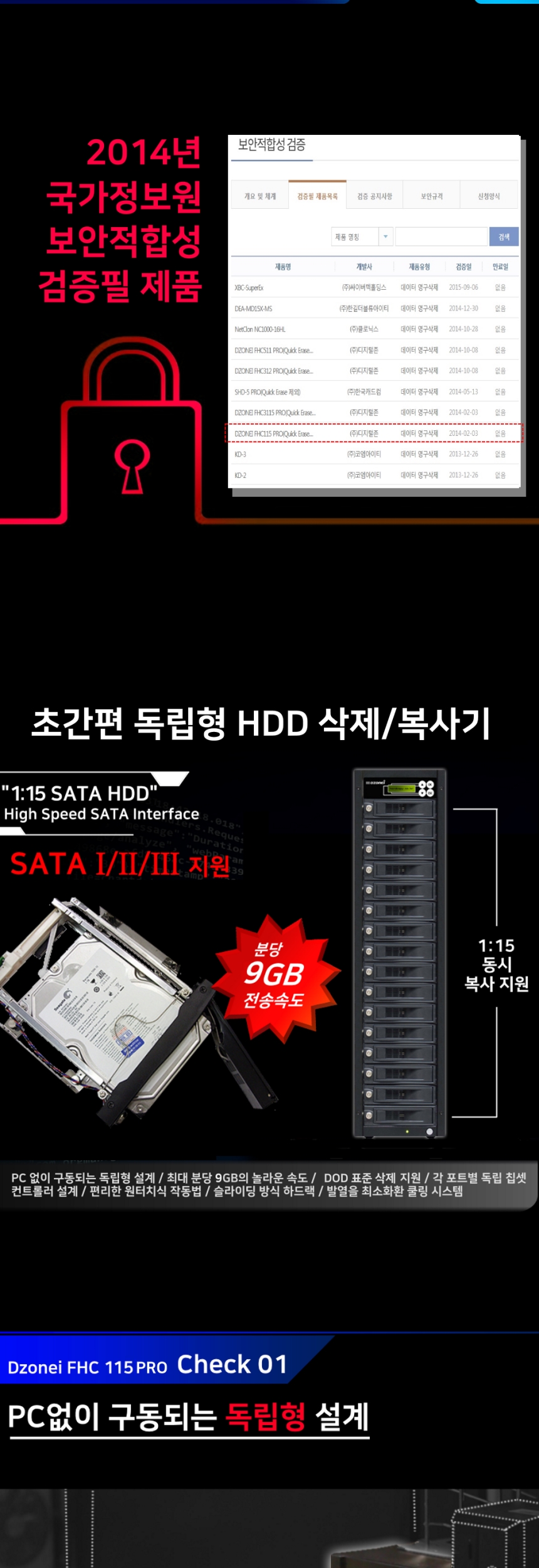 Dzonei FHC115 PRO (국정원 보안 적합성 검증 필, 1:15 복사 9G/분, 완전삭제/복사기, HDD WIPE,, DOD ERASE)