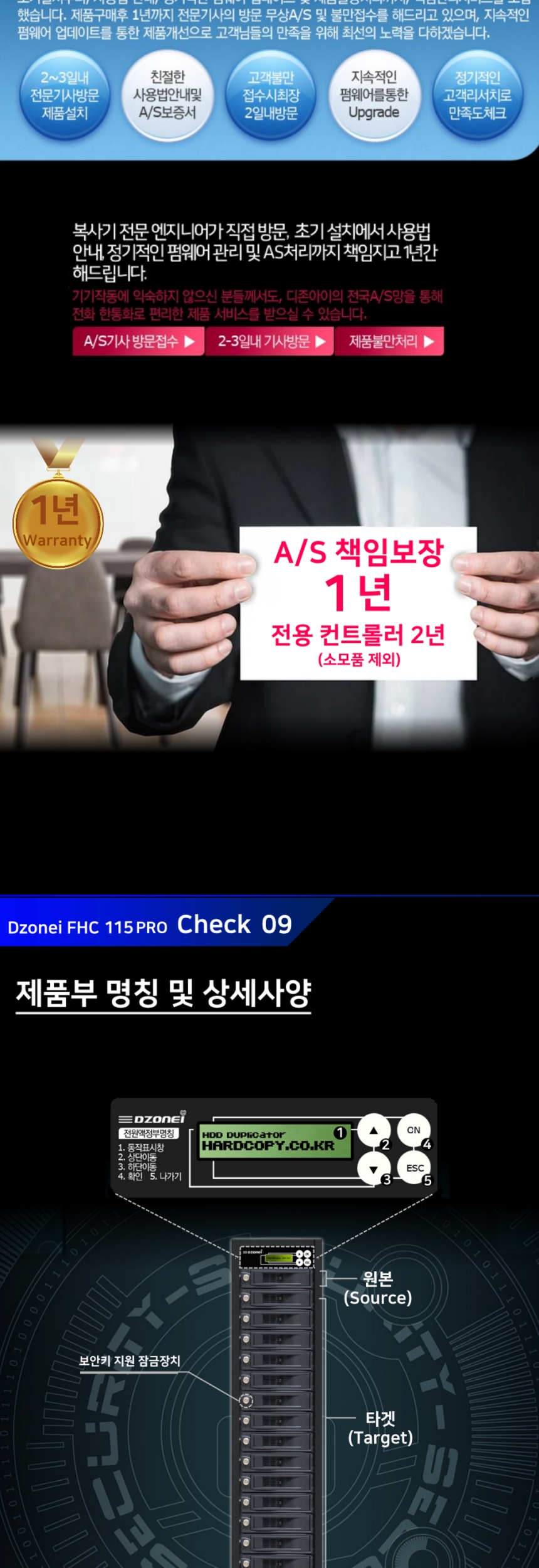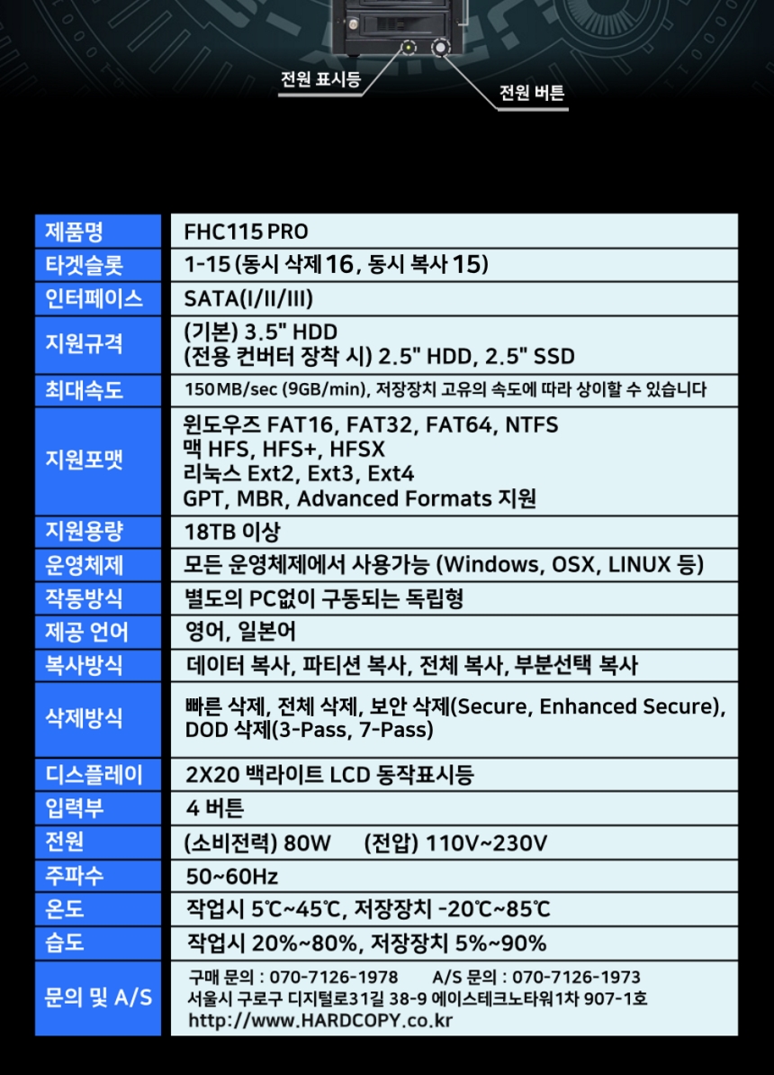 이미지 확대보기Dzonei FHC115 PRO (국정원 보안 적합성 검증 필, 1:15 복사 9G/분, 완전삭제/복사기, HDD WIPE,, DOD ERASE)