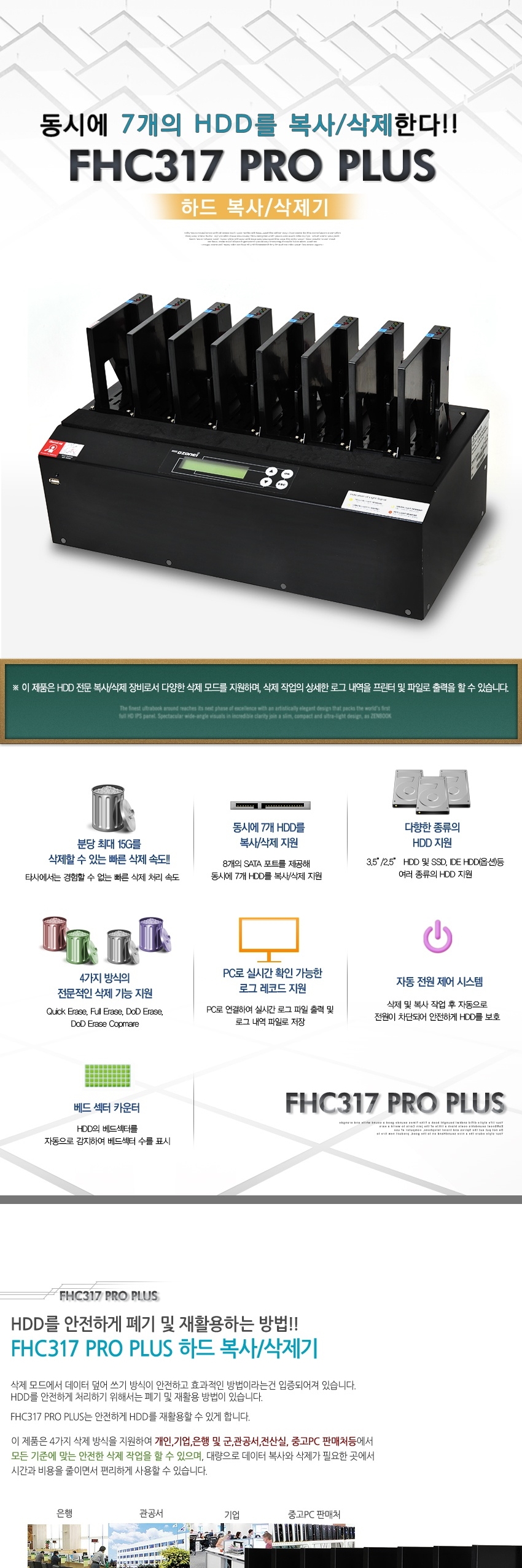 • DZONEI FHC317 PRO PLUS (국정원 보안 적합성 검증 필 제품, 1:7 , 최대 18G/분.하드 완전 삭제,DOD ERASE, 하드삭제기, HDD WIPE, 와이핑)
