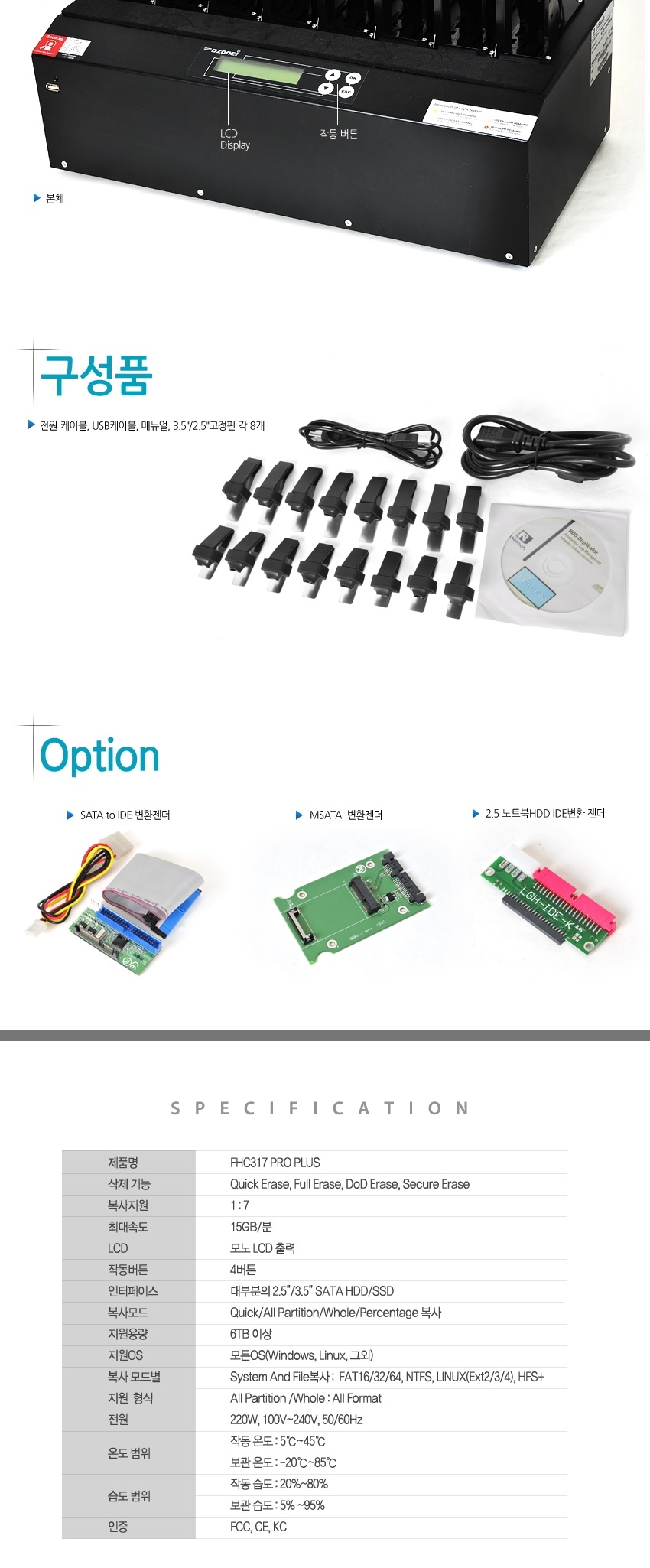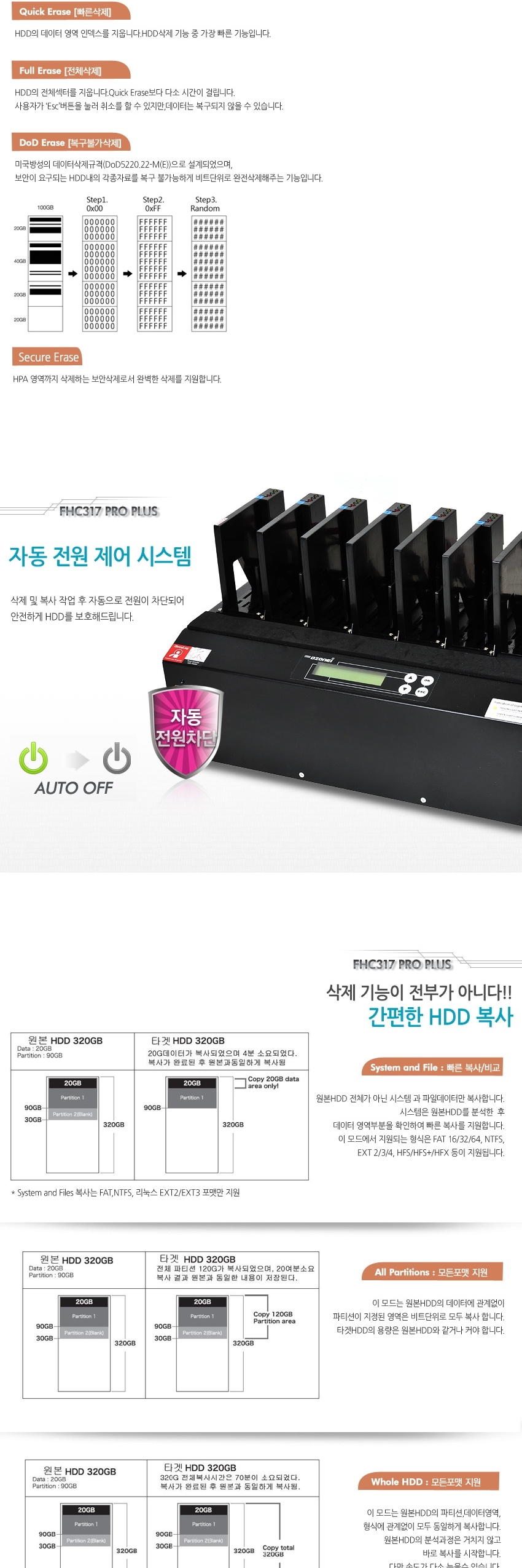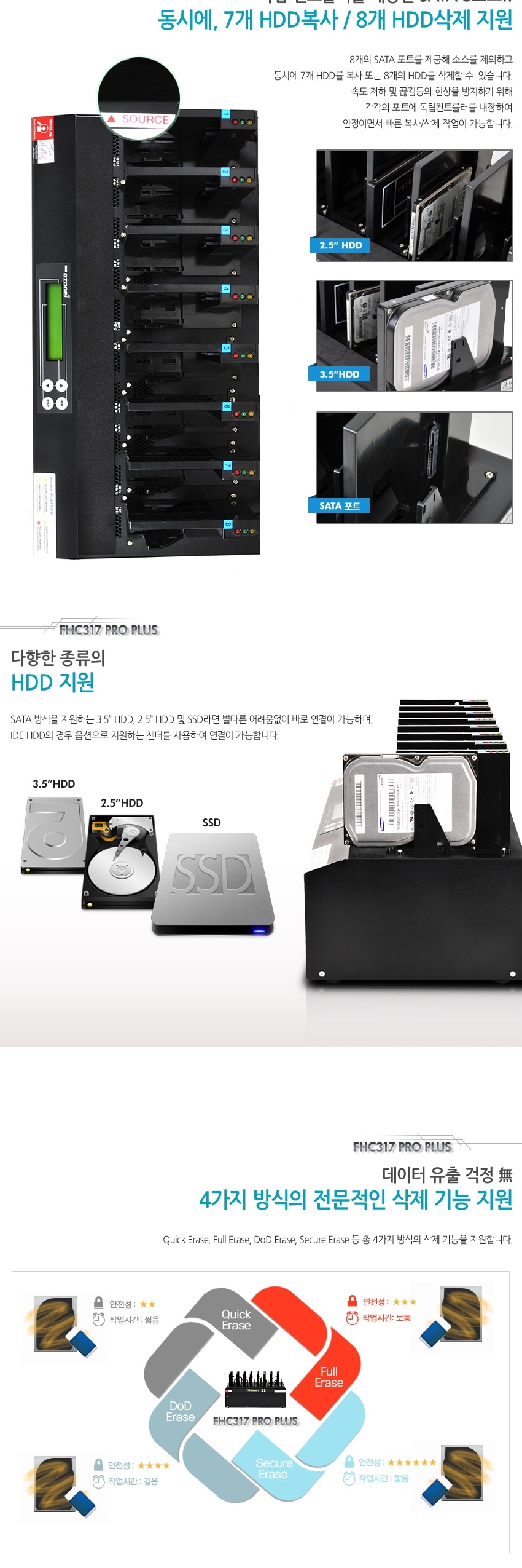 DZONEI FHC317 PRO PLUS (국정원 보안 적합성 검증 필 제품, 1:7 , 최대 18G/분.하드 완전 삭제,DOD ERASE, 하드삭제기, HDD WIPE, 와이핑)