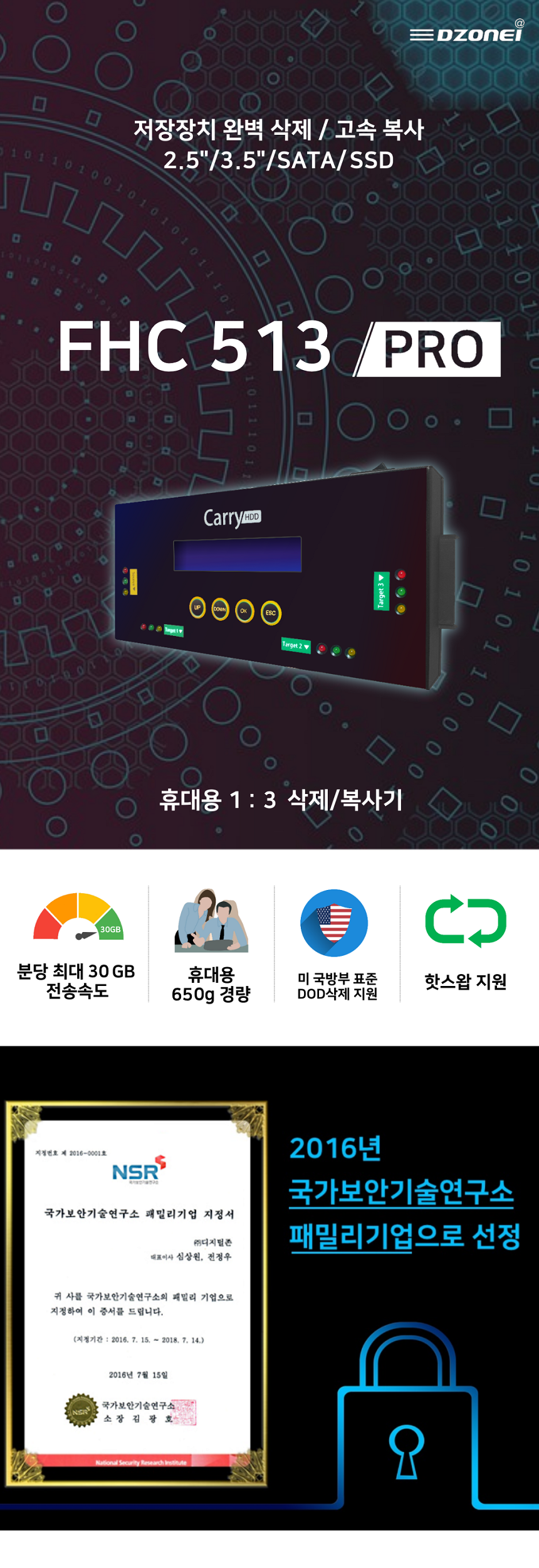DZONEI FHC513PRO (1:3 HDD/SSD 복사기/삭제기/SATA, MSATA, IDE 지원, 휴대용 초고속, HDD WIPE, WIPING, DOD ERASE,)