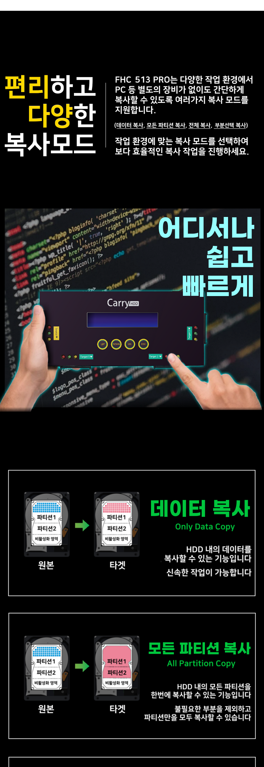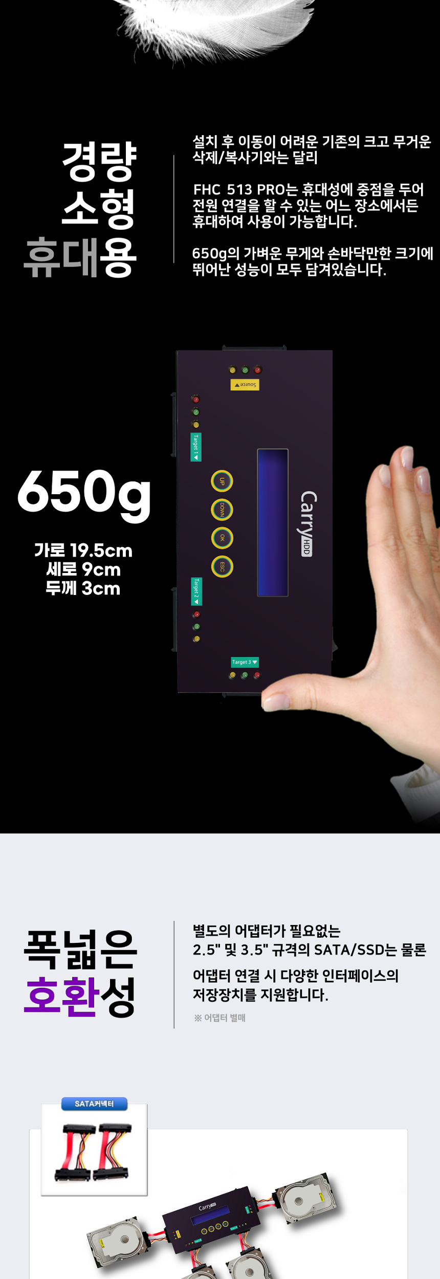 이미지 확대보기DZONEI FHC513PRO (1:3 HDD/SSD 복사기/삭제기/SATA, MSATA, IDE 지원, 휴대용 초고속, HDD WIPE, WIPING, DOD ERASE,)